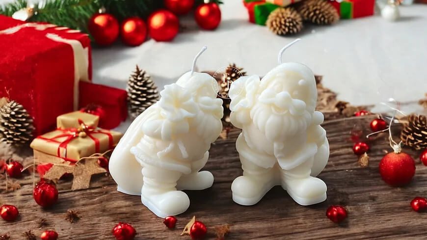 Si les parfums de Noël sont une tradition chez Fabio, ses bougies se distinguent aussi par leur design unique. On retrouve par exemple des bougies en forme de Père Noël, des Gnomes ou de Petits Rennes,